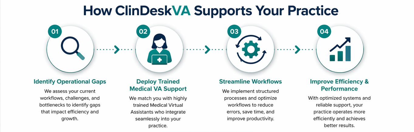 ClinDeskVA was created to support healthcare practices with trained Medical Virtual Assistants who understand both the clinical and operational demands of modern medicine.
